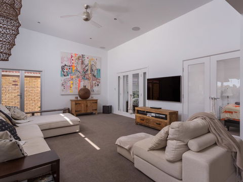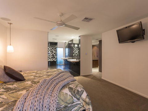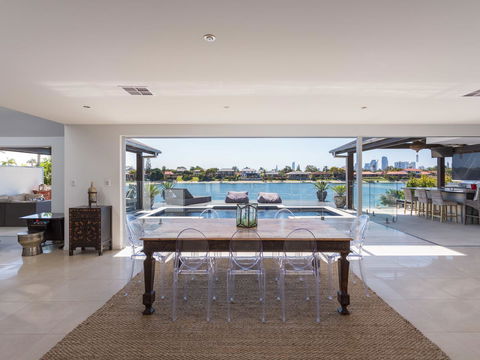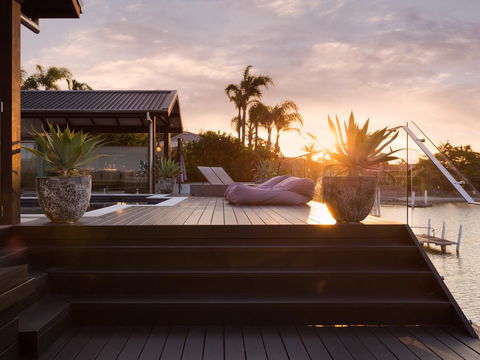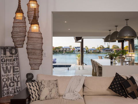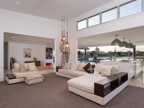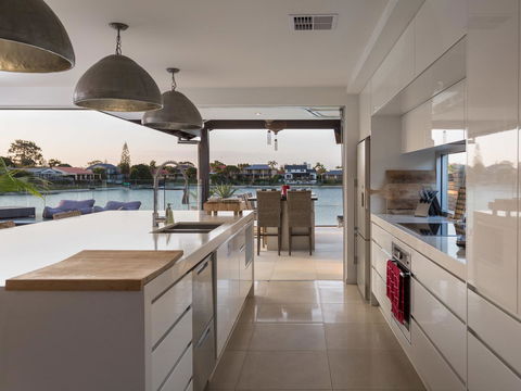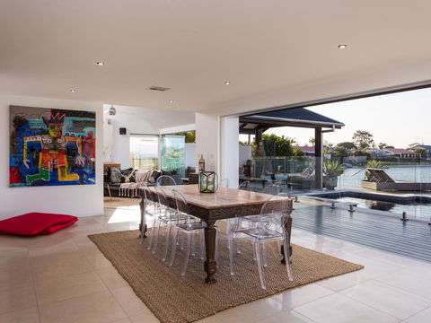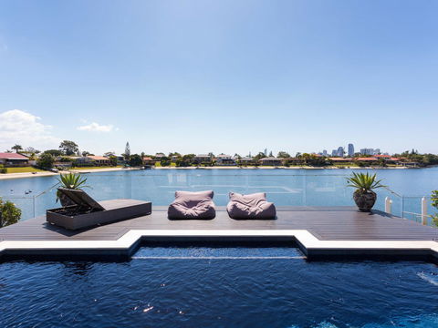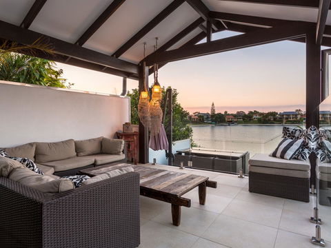 One of our best sellers in Gold Coast! Offering an outdoor pool, a steam room and a hot tub, Rumrunner Resort is located in Mermaid Waters, on the Gold Coast. This 5 bedroom home also features free WiFi, a tennis court and an outdoor kitchen with a BBQ and bar. Set alongside Rumrunner Lake, this resort is 3 minutes' drive from Mermaid Beach and 5 minutes' drive from Broadbeach. The Wet 'n' Wild, Dreamworld and Warner Bros. Movie World theme parks are within 35 minutes' drive. This stylish holiday home has a fully equipped kitchen, a large dining area and 3 bathrooms. The spacious living areas offer sofa suites, a flat-screen TV, a DVD player and a Nintendo Wii gaming console. River and city views are offered from each room. An array of activities can be enjoyed on site or in the surroundings, including fishing and kayaking. The property includes free on-site parking.New South Wales Tourism welcomes Rumrunner Resort, the ideal Mermaid Waters QLD Holiday outlet for all the family to enjoy. We have made sure that we have thought of everything you would expect from your vacation with many features, click on the email or phone now button to get in touch with the owner.